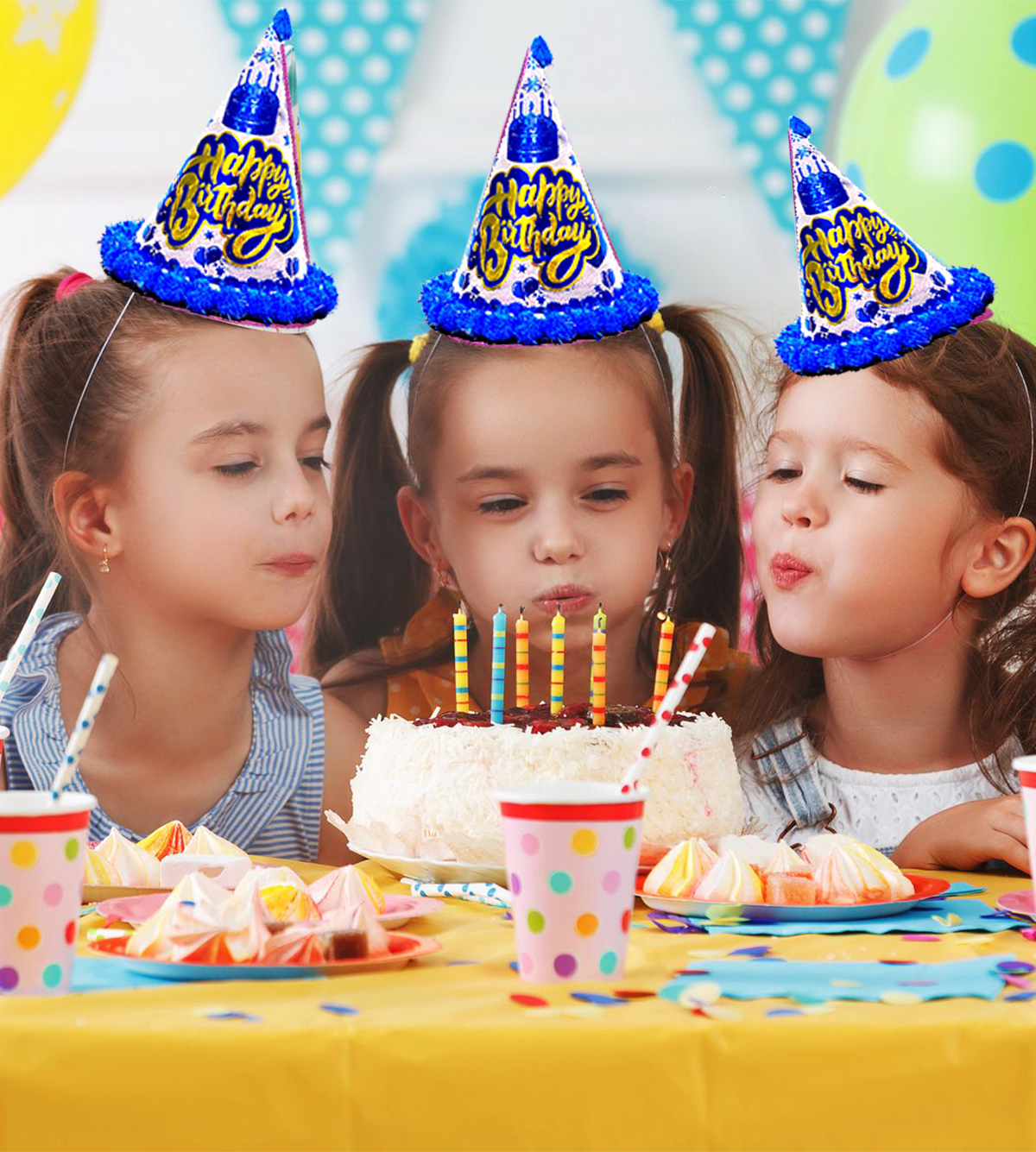 "Party in style with our vibrant Birthday Caps! These fun and festive accessories are perfect for all ages. Lightweight, comfortable, and durable, they'll keep the party spirit alive all day long. Make your special day memorable with these delightful birthday caps!"